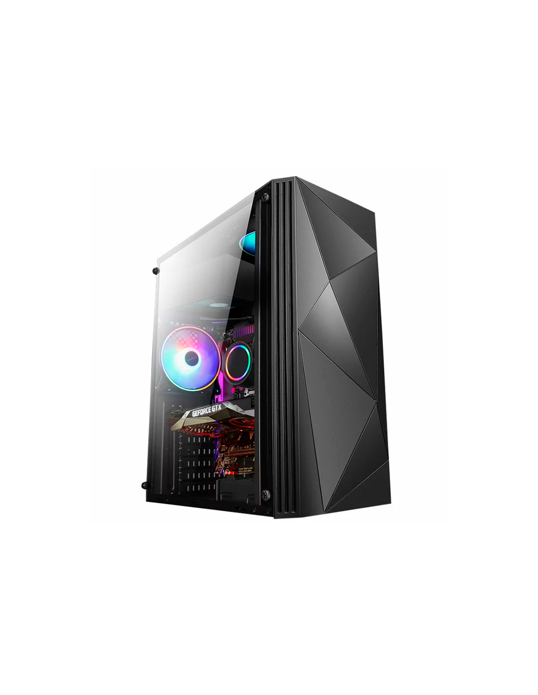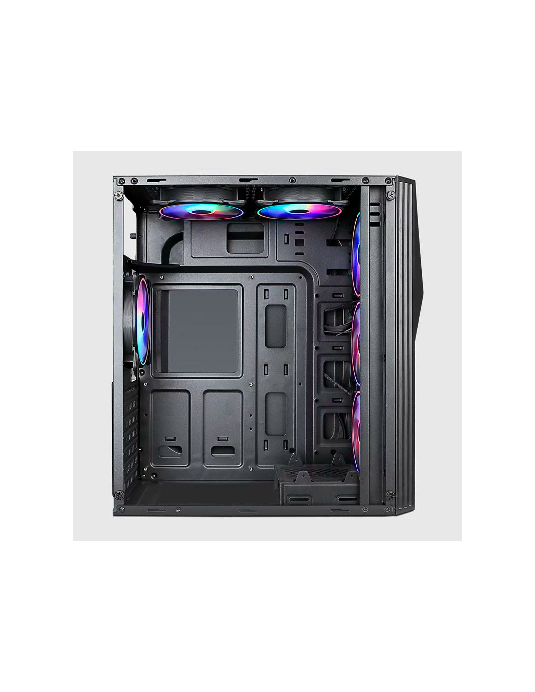 Gabinete Gamer Lingying Micro ATX con diseño moderno y compacto. Excelente ventilación, panel lateral transparente y compatibilidad ideal para armados gamer eficientes y ordenados.