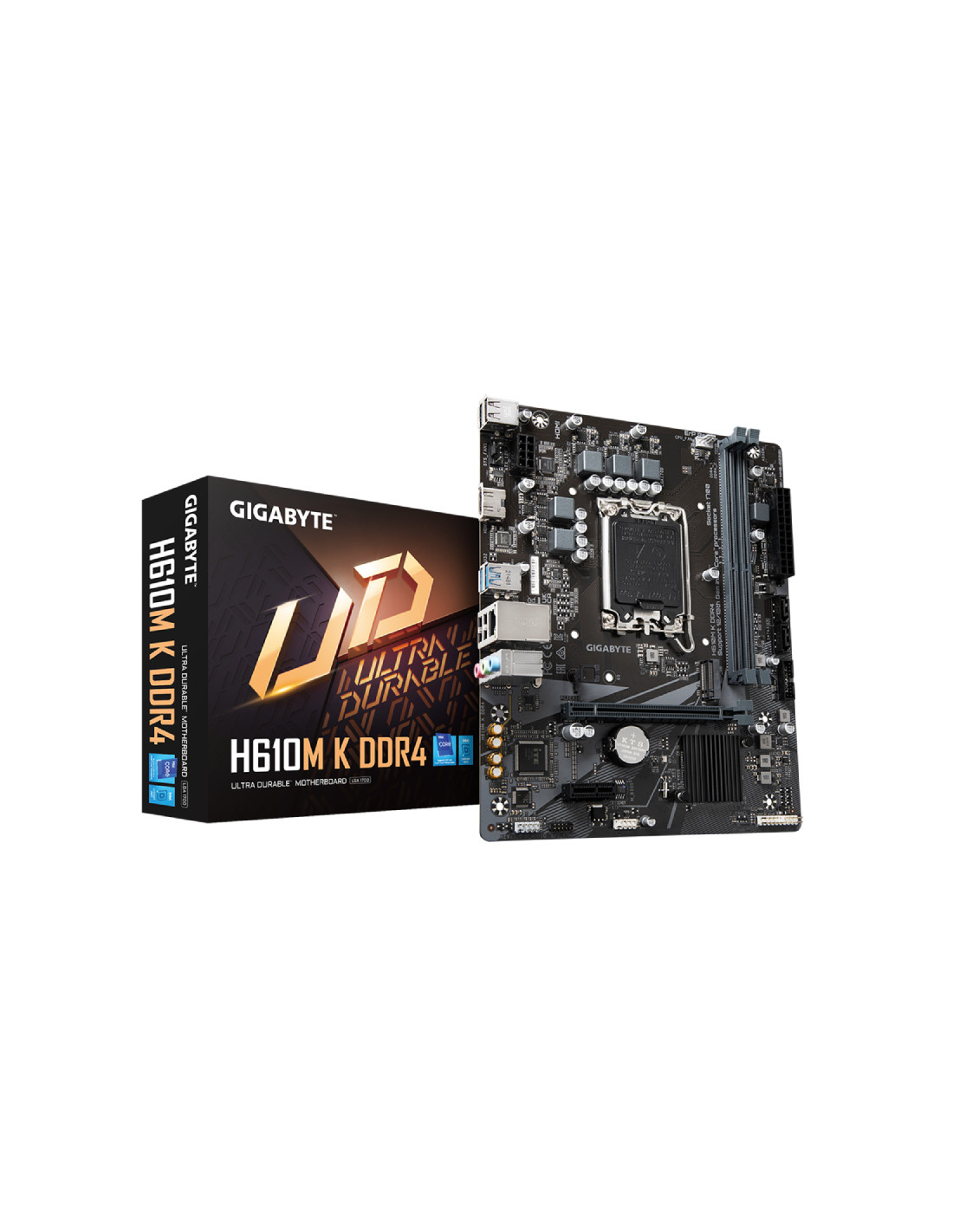 La Mother Gigabyte H610M K 1700 DDR4 es la opción perfecta para construir un sistema confiable y eficiente, compatible con procesadores Intel de 12ª generación y memoria DDR4, ideal para tareas diarias y gaming básico.