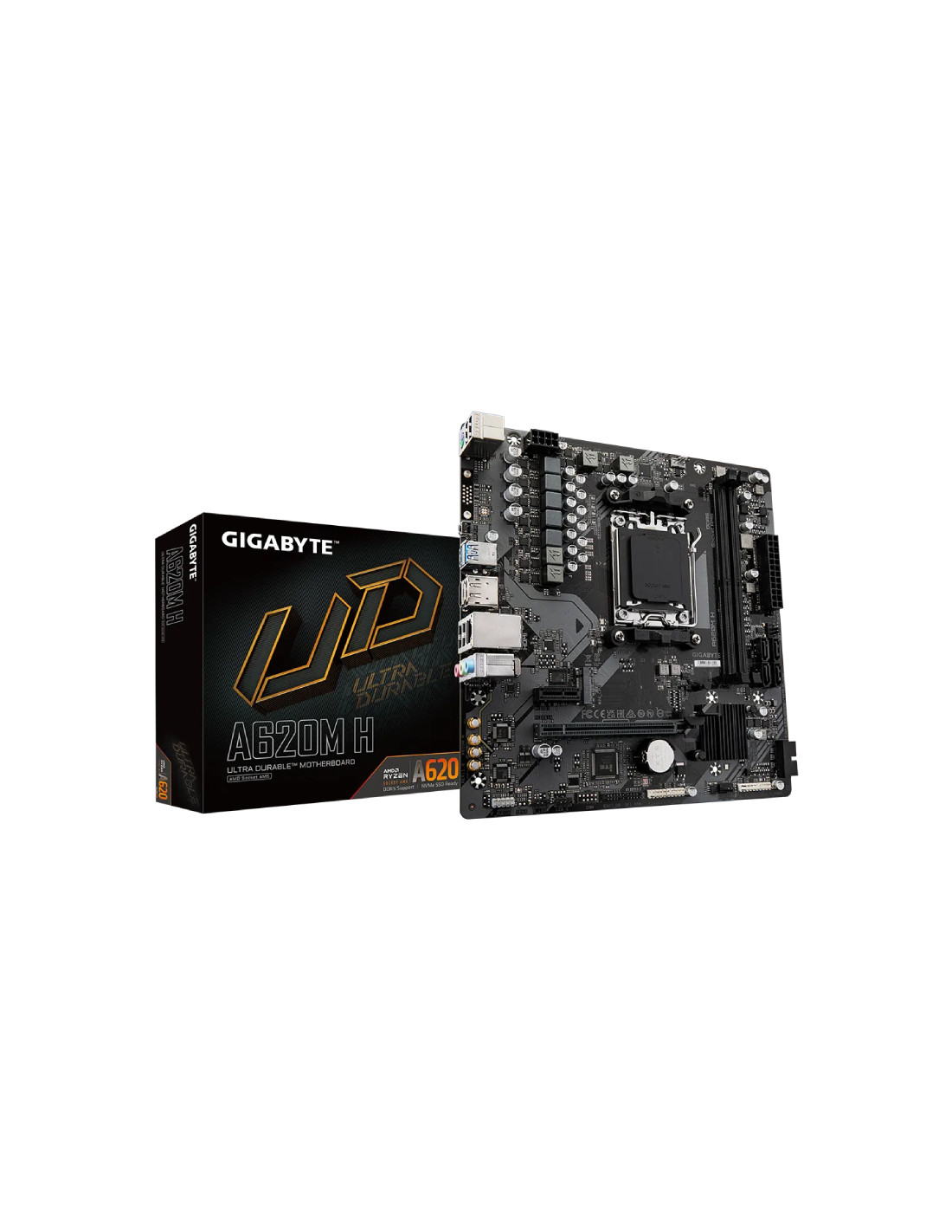 La Gigabyte A620M H es la base ideal para PCs con procesadores AMD Ryzen AM5. Soporta DDR5, PCIe 4.0 y ofrece estabilidad, rendimiento y expansión en formato Micro ATX.