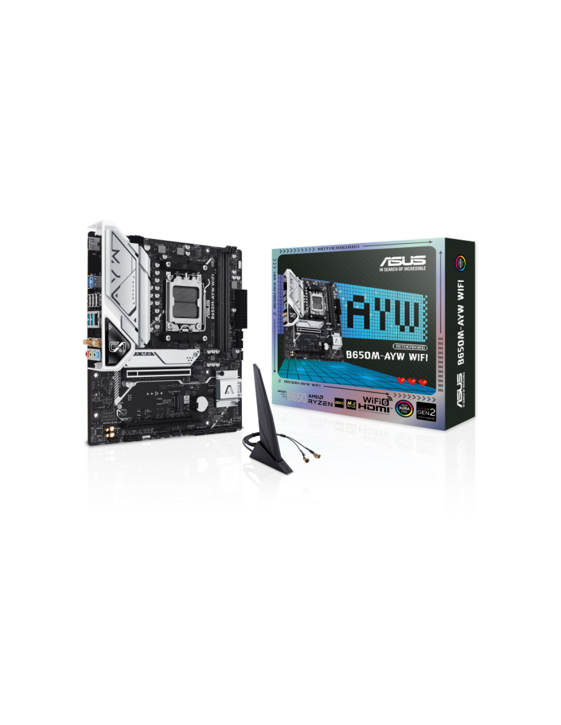 La Mother Asus B650M-AYW WiFi ofrece rendimiento estable para procesadores AMD Ryzen, conectividad WiFi integrada, PCIe 5.0 y soporte DDR5 para un setup potente y moderno.