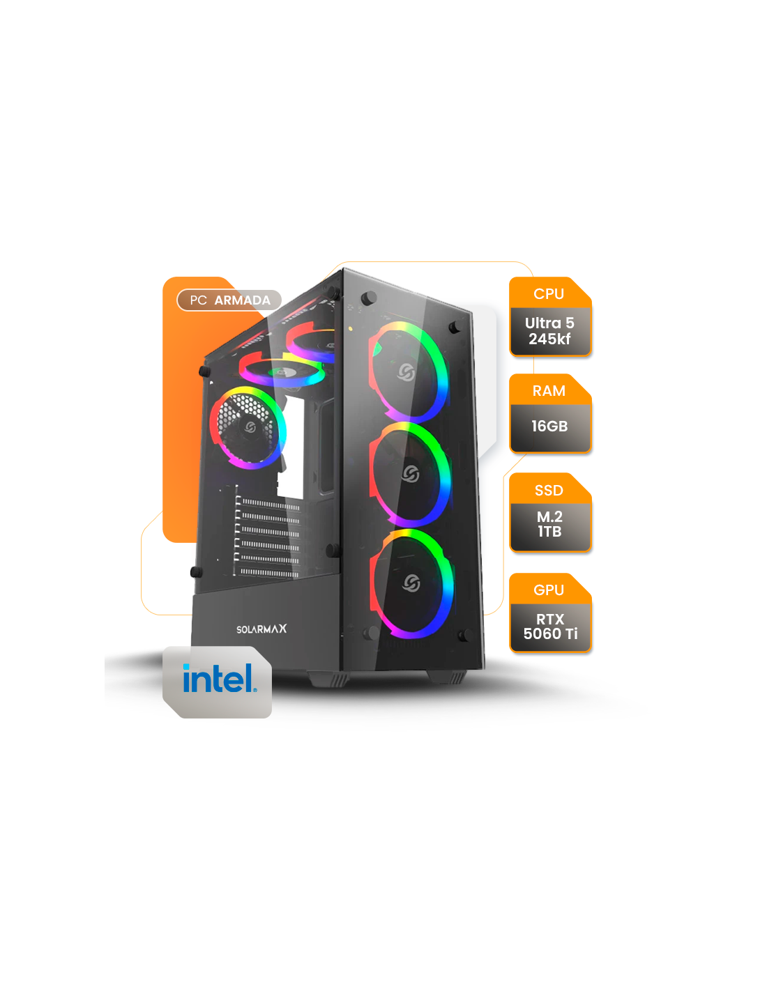 Pc Gamer Intel Ultra 5 245kf Rtx 5060ti 16gb Ssd 1tb H810 750w 80+ Solarmax Cm-5901