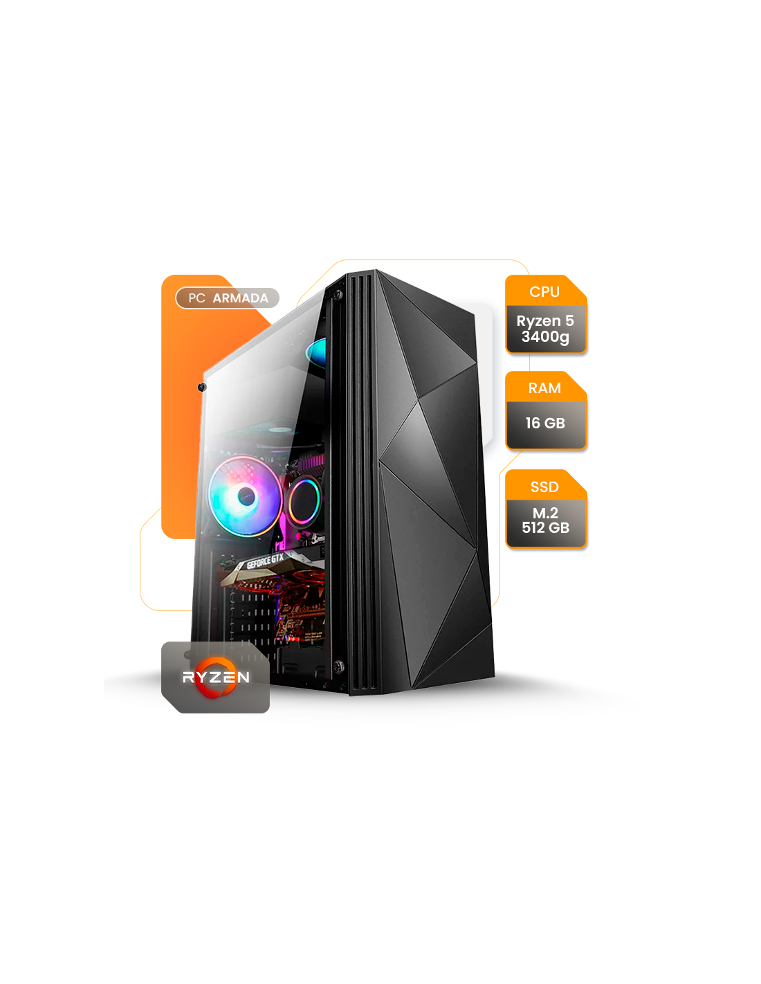 Pc Gamer Amd Ryzen 5 3400g Rtx 3050 A520 16gb Ssd 480gb Gab Kit + Teclado, Mouse Y Parlante