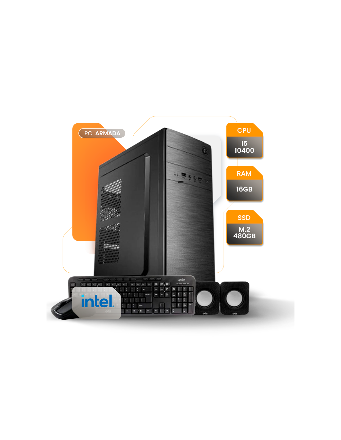 Pc Oficina Amd Ryzen 5 8500g 8gb Ssd 500gb A620 Gab Kit + Teclado, Mouse Y Parlantes