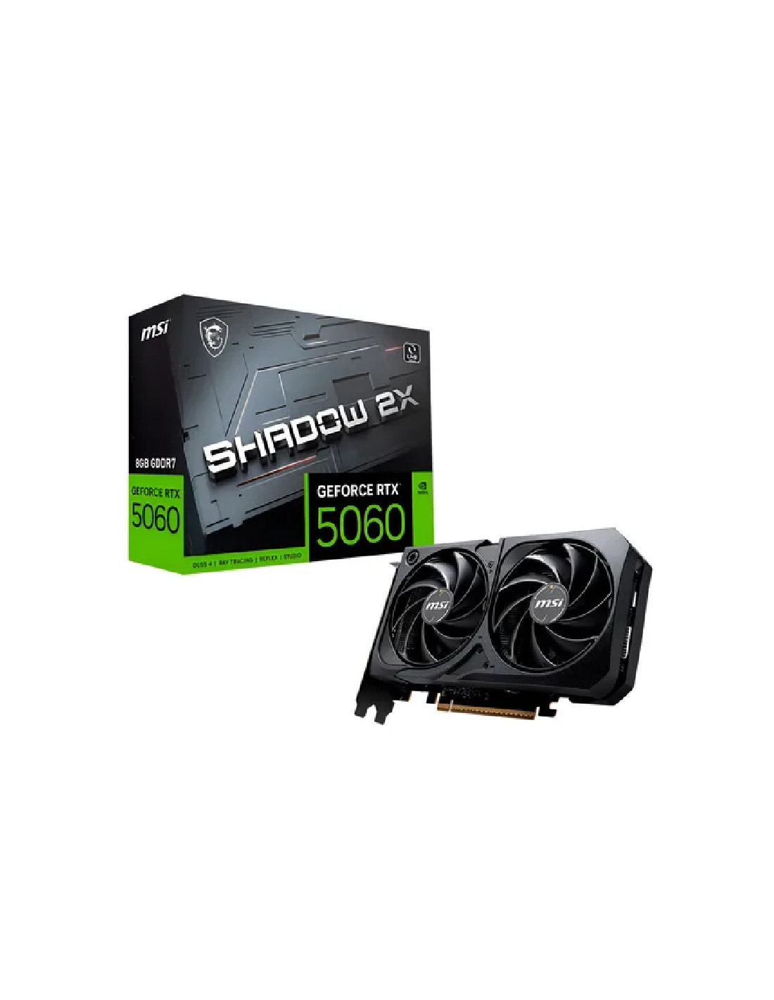 MSI GeForce RTX 5060 8GB Shadow 2X OC: potencia gráfica de nueva generación con trazado de rayos y DLSS. Rendimiento superior y diseño eficiente para gamers exigentes.