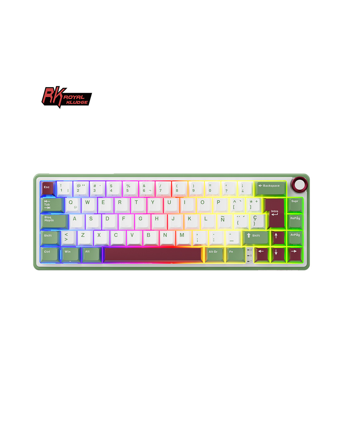 El teclado RKR65 con switches Greensand en Chartreuse ofrece una experiencia de escritura suave y eficiente con un diseño compacto del 65%. Perfecto para gamers y profesionales que buscan estilo y funcionalidad.