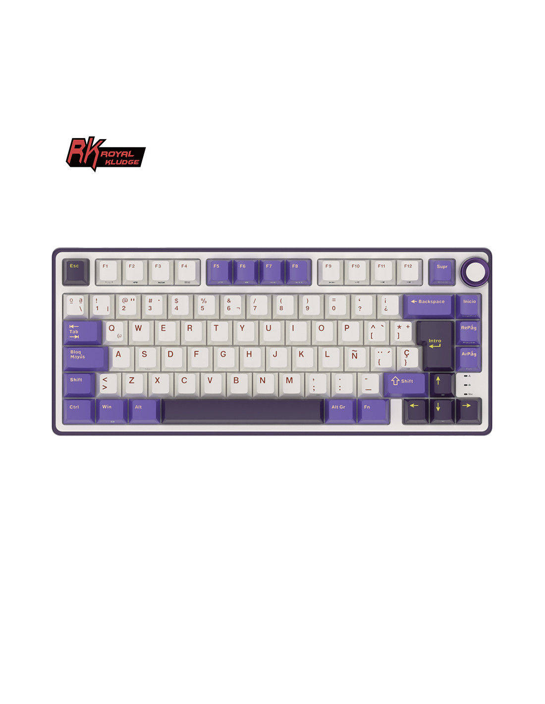 Teclado RKR75 en Blackberry con switches Brown. Diseño compacto del 75% para mayor agilidad y confort, ideal para productividad y gaming. Conexión estable y estilo elegante.