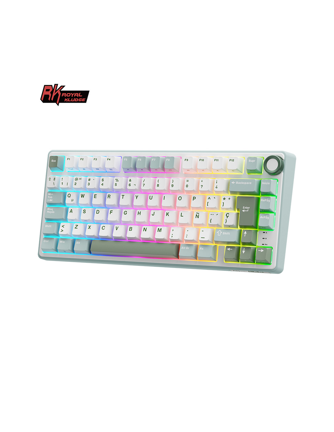 Teclado RKR75 Skycyan con switches Silver, compacto al 75%. Diseñado para gamers y profesionales, ofrece una experiencia de escritura suave y precisa con un estilo llamativo.