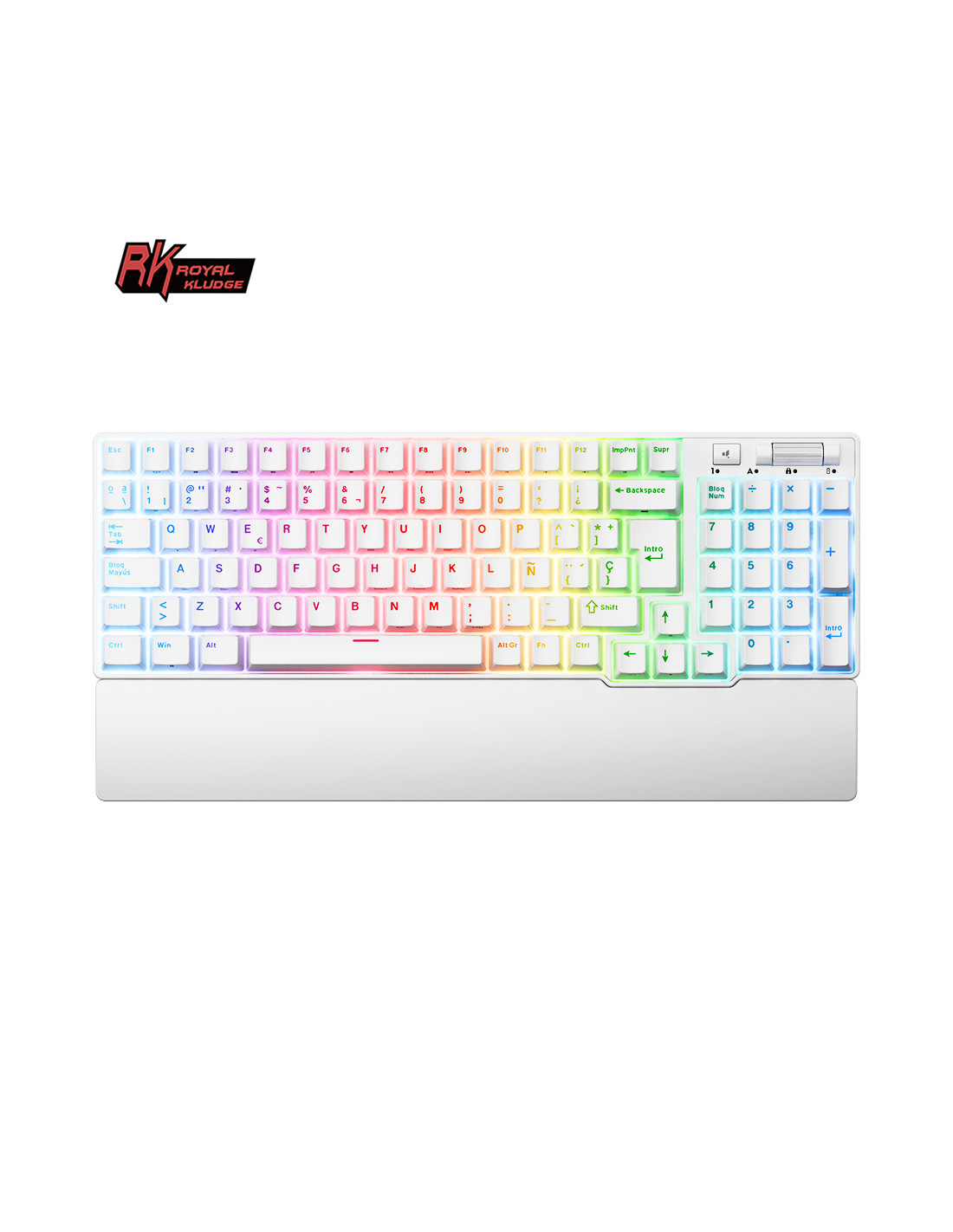 El teclado RK96 Wireless White con switches Brown ofrece rendimiento y estilo en un diseño compacto del 90%. Con conectividad inalámbrica, es ideal para gaming y productividad.