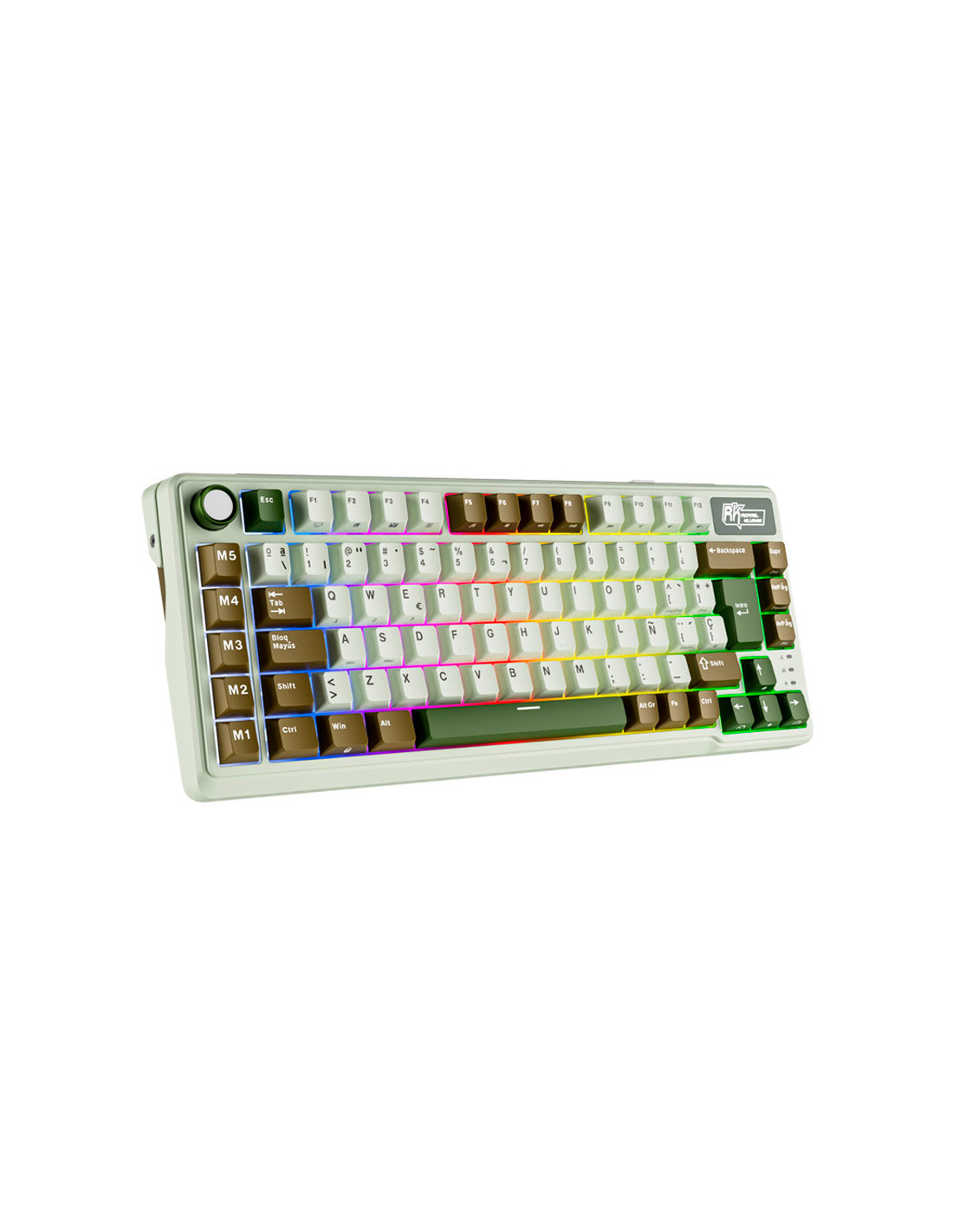 El Royal Kludge RKL75 Wireless Palm Green ofrece diseño compacto 75%, switches Cream de tacto suave, estética verde tropical y conexión inalámbrica para setups modernos y con estilo.